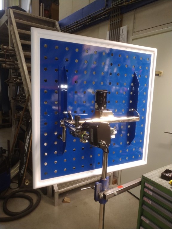 Na duplex coating, witte rand van 5 cm. in DD-coating gespoten.